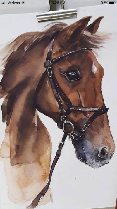 Фото: Портрет лошади акварелью