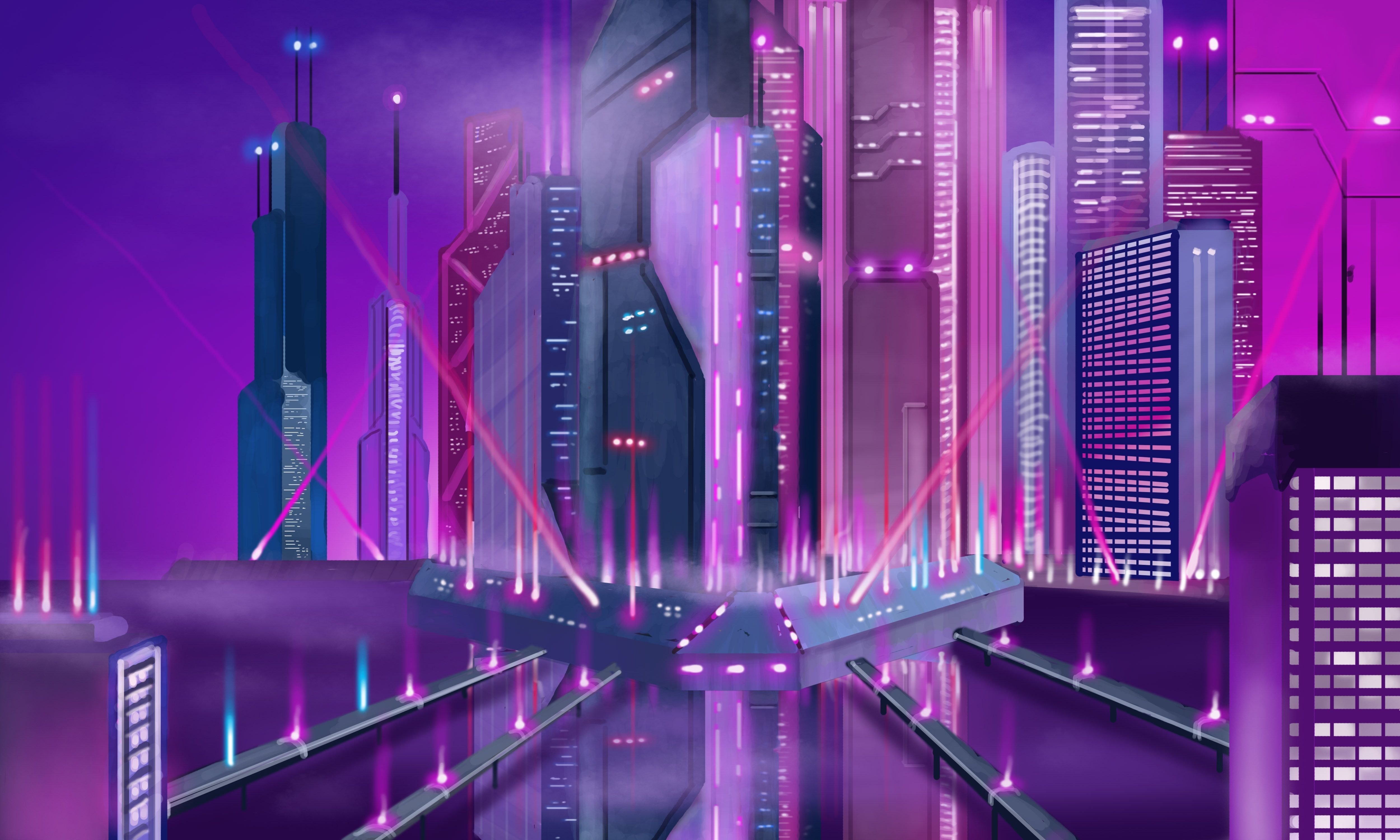 Скачивайте футуристичные киберпанковые фиолетовые фоны