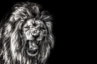 Фото: Злой Лев на черном фоне