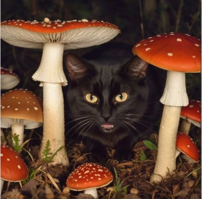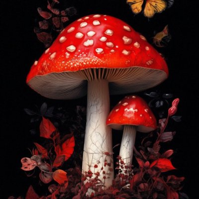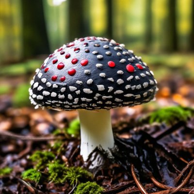Впечатляющие фотографии черного мухомора с его характерной формой и цветом. Создают атмосферу загадочности и мистики. Идеально для создания фантастических проектов, детских сказок и мистических дизайнов.